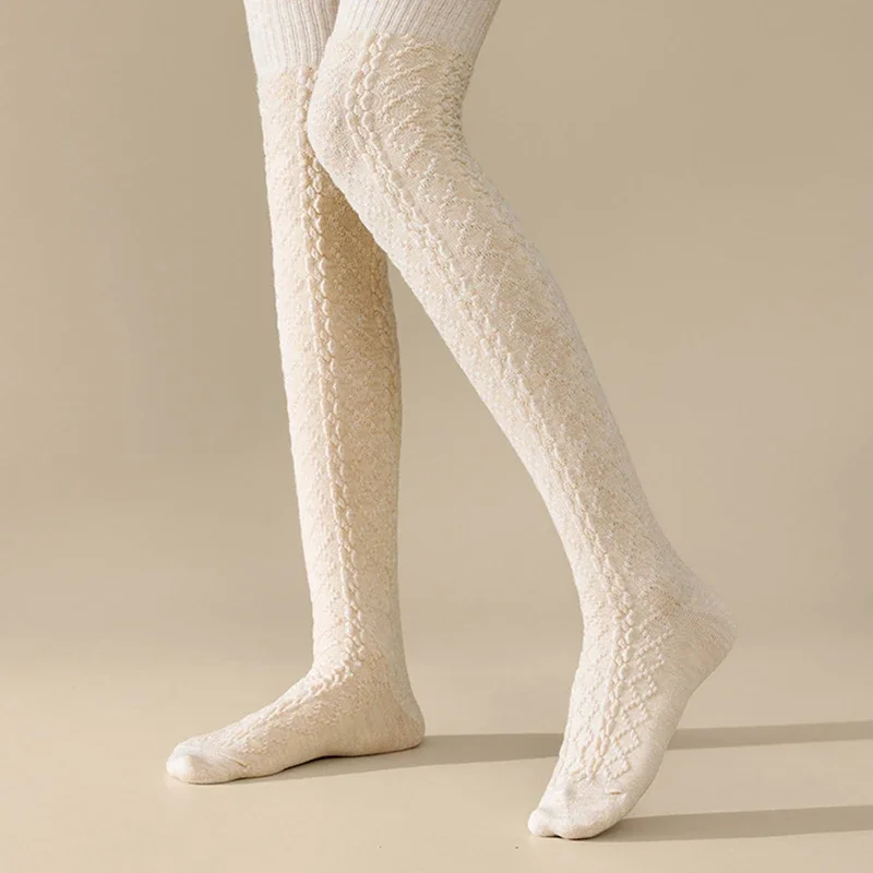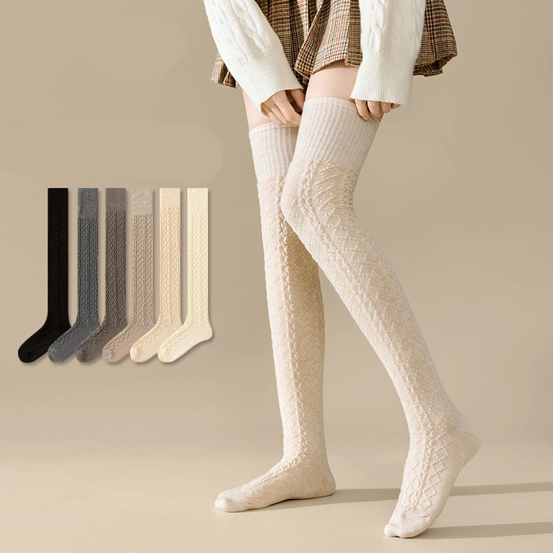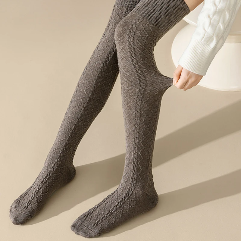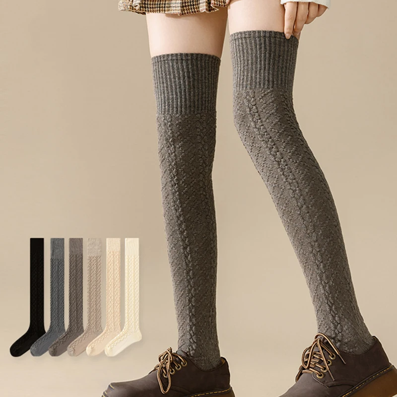 1 Pairs Autumn Winter Women's Wool Blended Knee High Socks Thick Warm Soft Comfortable Fashionable Women Casual Long Tube Socks