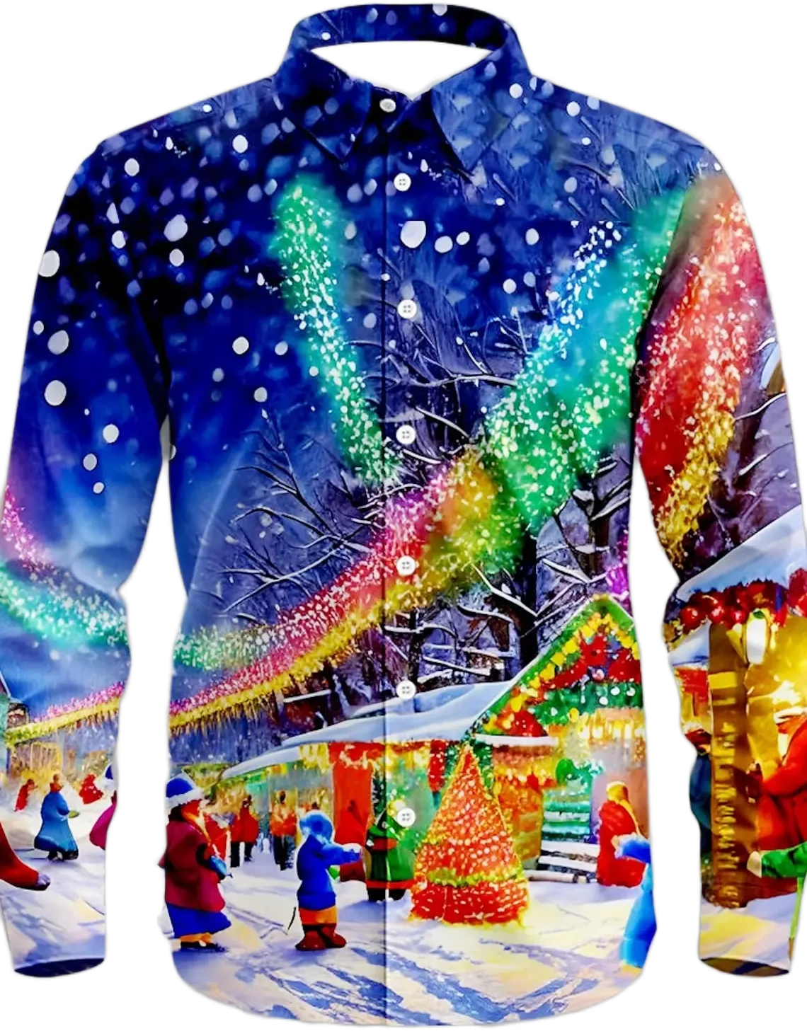 Made from premium-quality polyester broadcloth, the fabric feels soft, breathable, and lightweight—ideal for four-season wear, especially during the busy winter holidays. The turn-down collar, button-up closure, and full-sleeve design give it a casual-meets-vintage vibe, offering a comfortable fit for daily wear. Whether worn alone or layered with a jacket, this shirt keeps you looking stylish and festive from day to night.