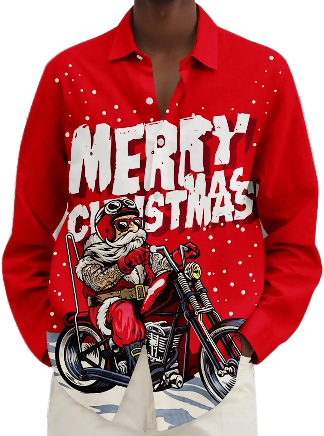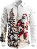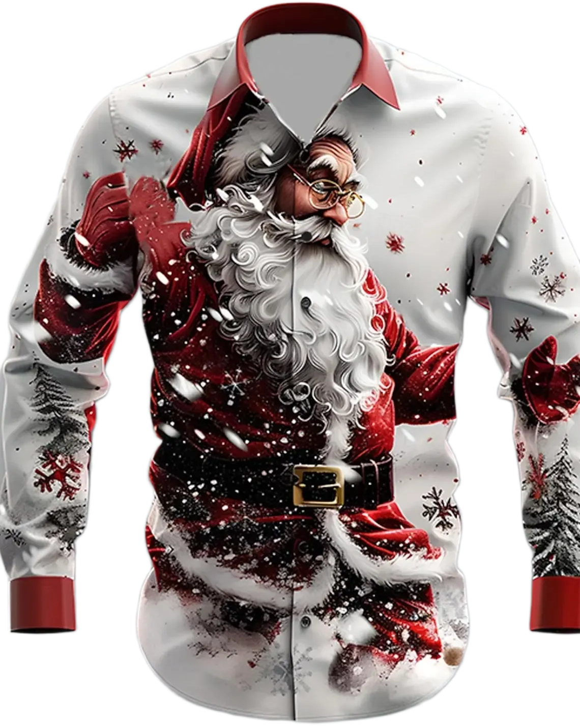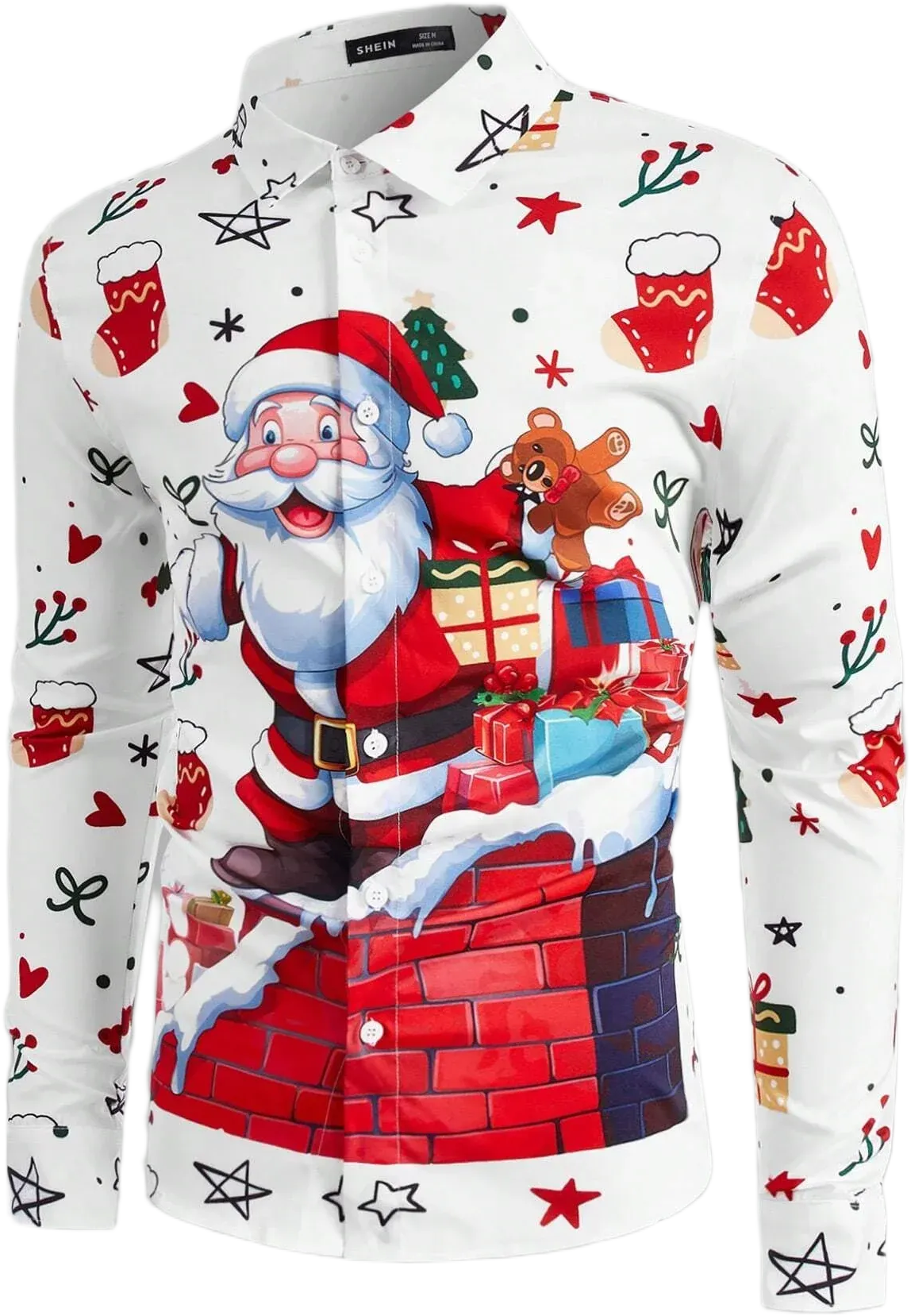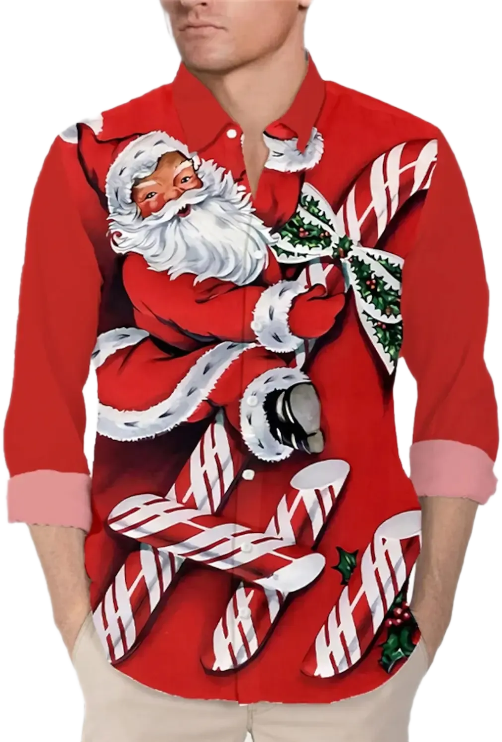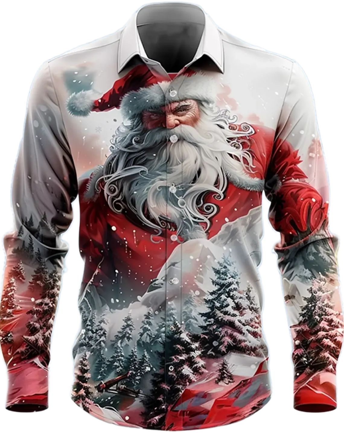 2025 Christmas Santa Claus 3D Graphic Shirt for Men – Vintage Holiday Long Sleeve Casual Party Top