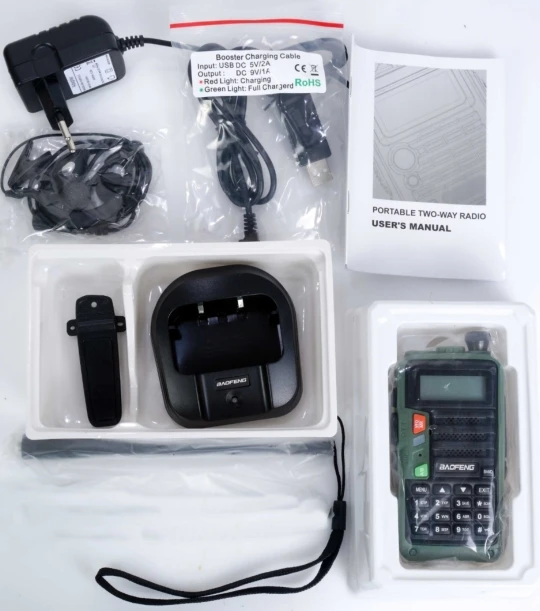 Comes with USB Charger, Antenna, Belt Clip, and more