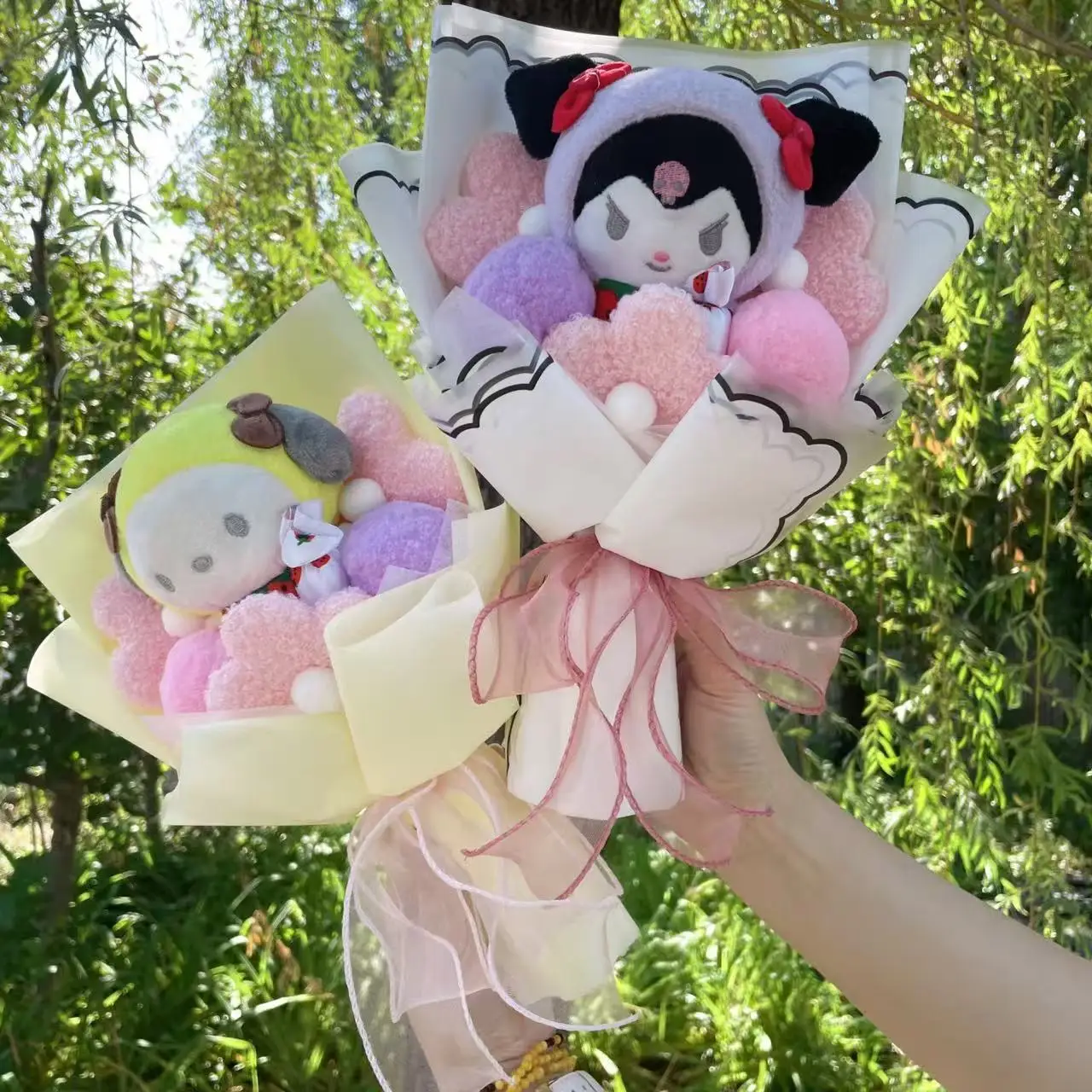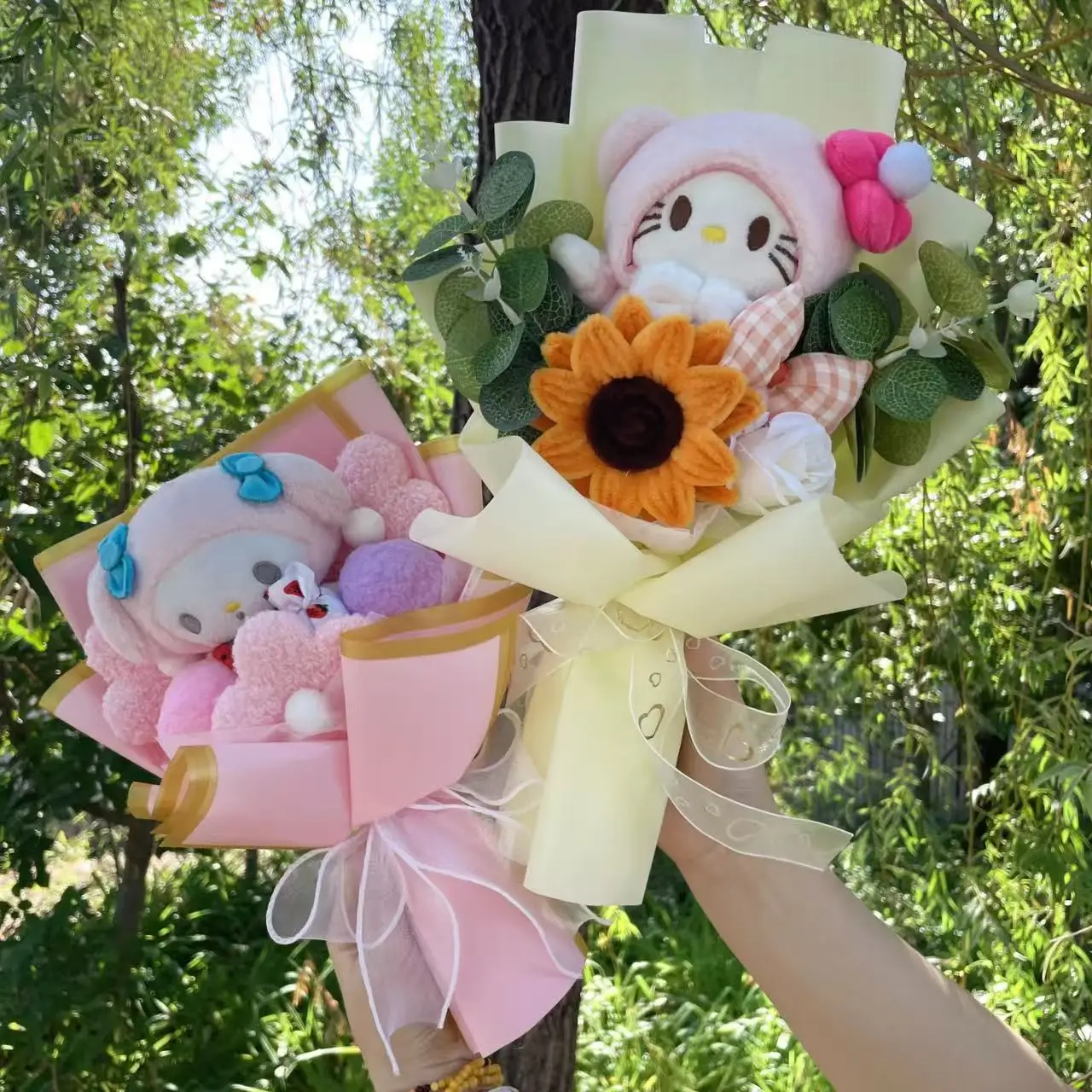 Cartoon Bouquet My Melody Kuromi Cinnamoroll Kt Cat Plush Doll Toy Bouquet Gift Box Valentine's Day Christmas Graduation Gifts