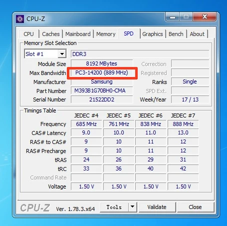 1866MHz modules may show as PC3-14200 (889MHz) in CPU-Z, which is normal.