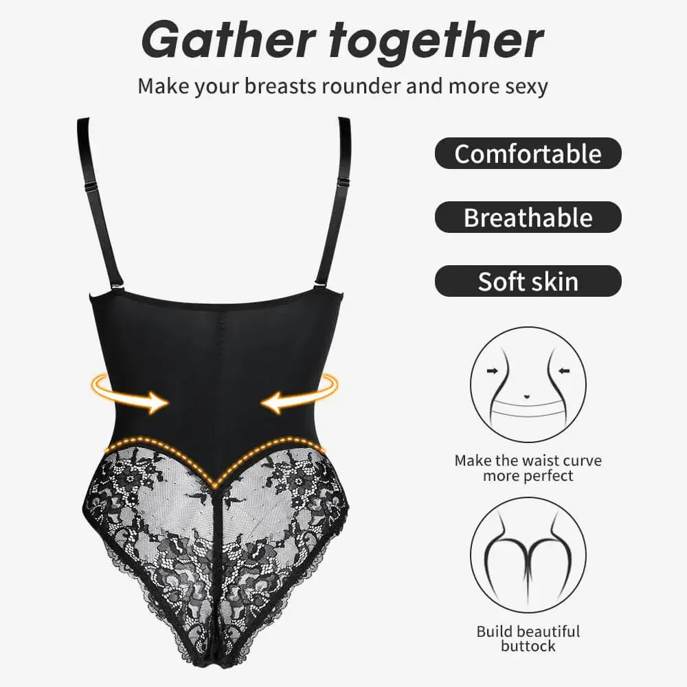 Fajas Colombianas Underwear Body Shapers Women Shapewear Bodysuit Sexy Lace Open Crotch Lingerie V-collar with Bras