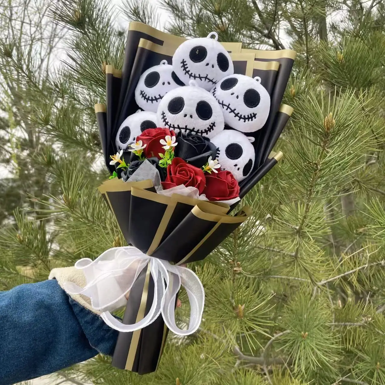 Halloween Jack Skellington Plush Doll Toy With Flowers Bouquet Stuffed Animals Valentine Christmas Graduation Gift