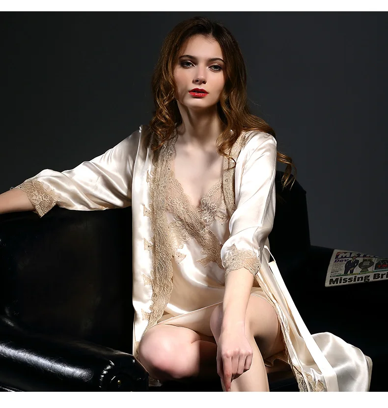 Kimono & Robe Nightgown Female 100% Silk Two-piece Set Sleepwear New Silk Pajamas Women Pyjamas Female Summer Sexy Nightdres