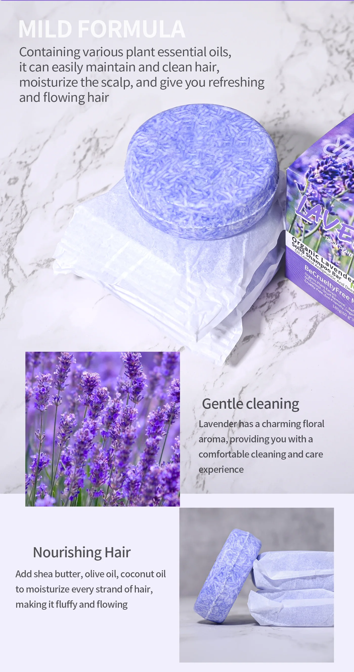Refresh your scalp, control excess oil, and enjoy naturally clean hair with this 3-pack lavender essential oil solid shampoo bar set. Silicone-free, plant-based, and gentle, it’s designed for buyers who want visible results and a cleaner hair routine—fast.