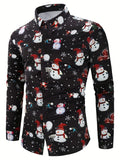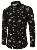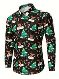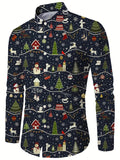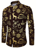 Men’s Christmas Elk Print Formal Shirt – Long Sleeve Holiday Party Shirt | Stylish Festive Men’s Fashion