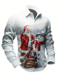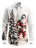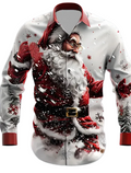 Men’s Christmas Long Sleeve Shirt – Breathable Casual Santa Claus Print Holiday Fashion Top