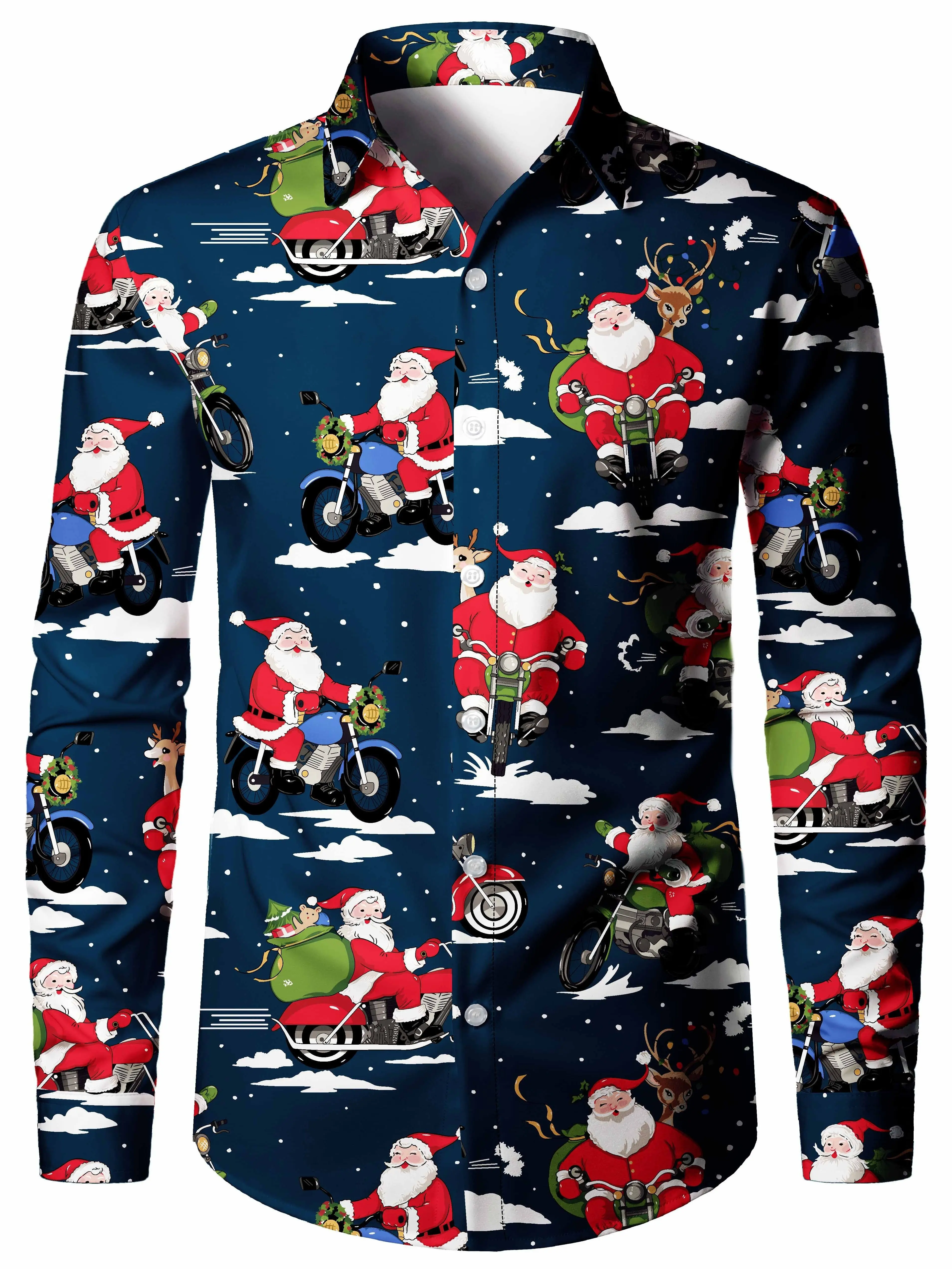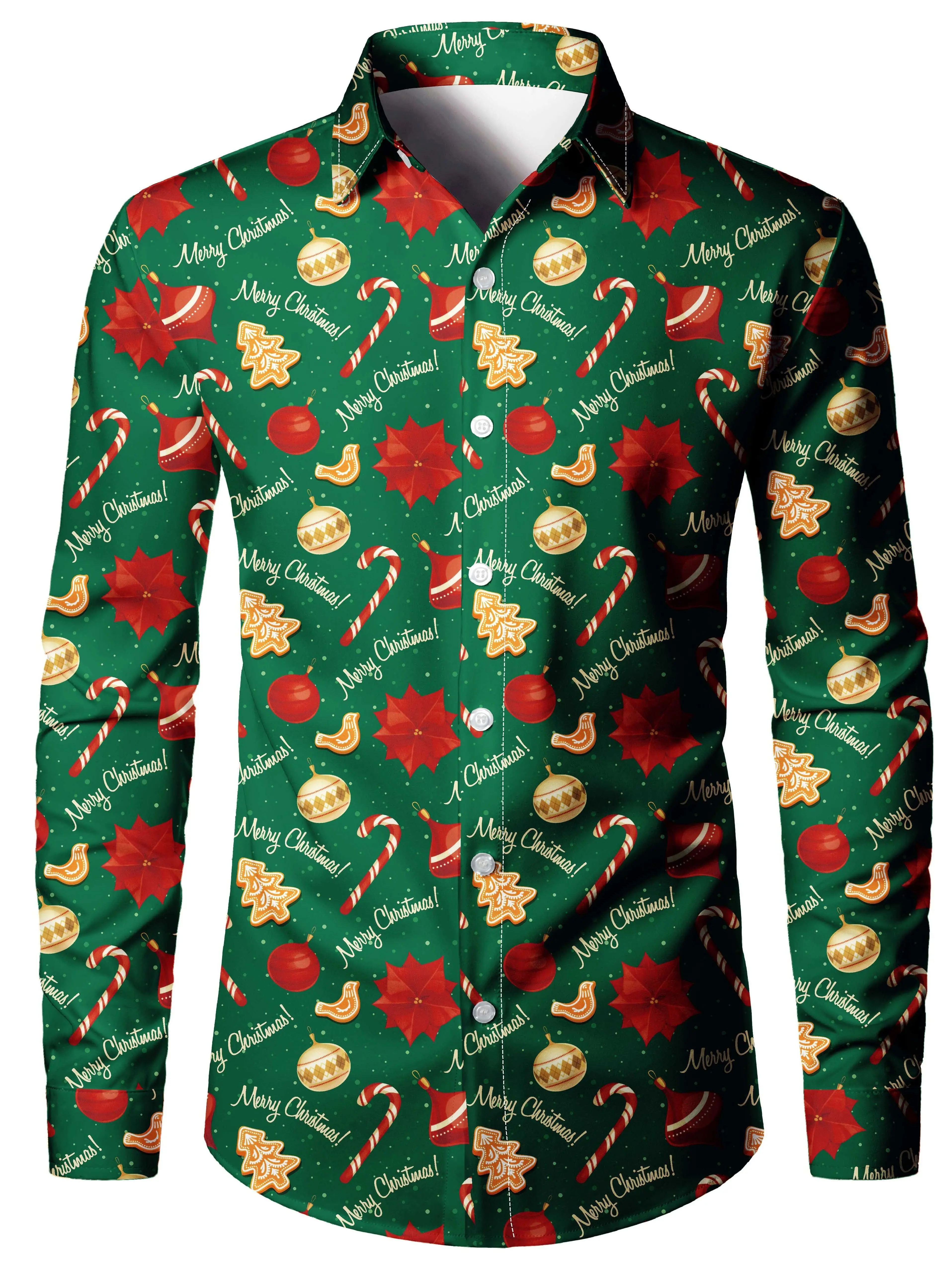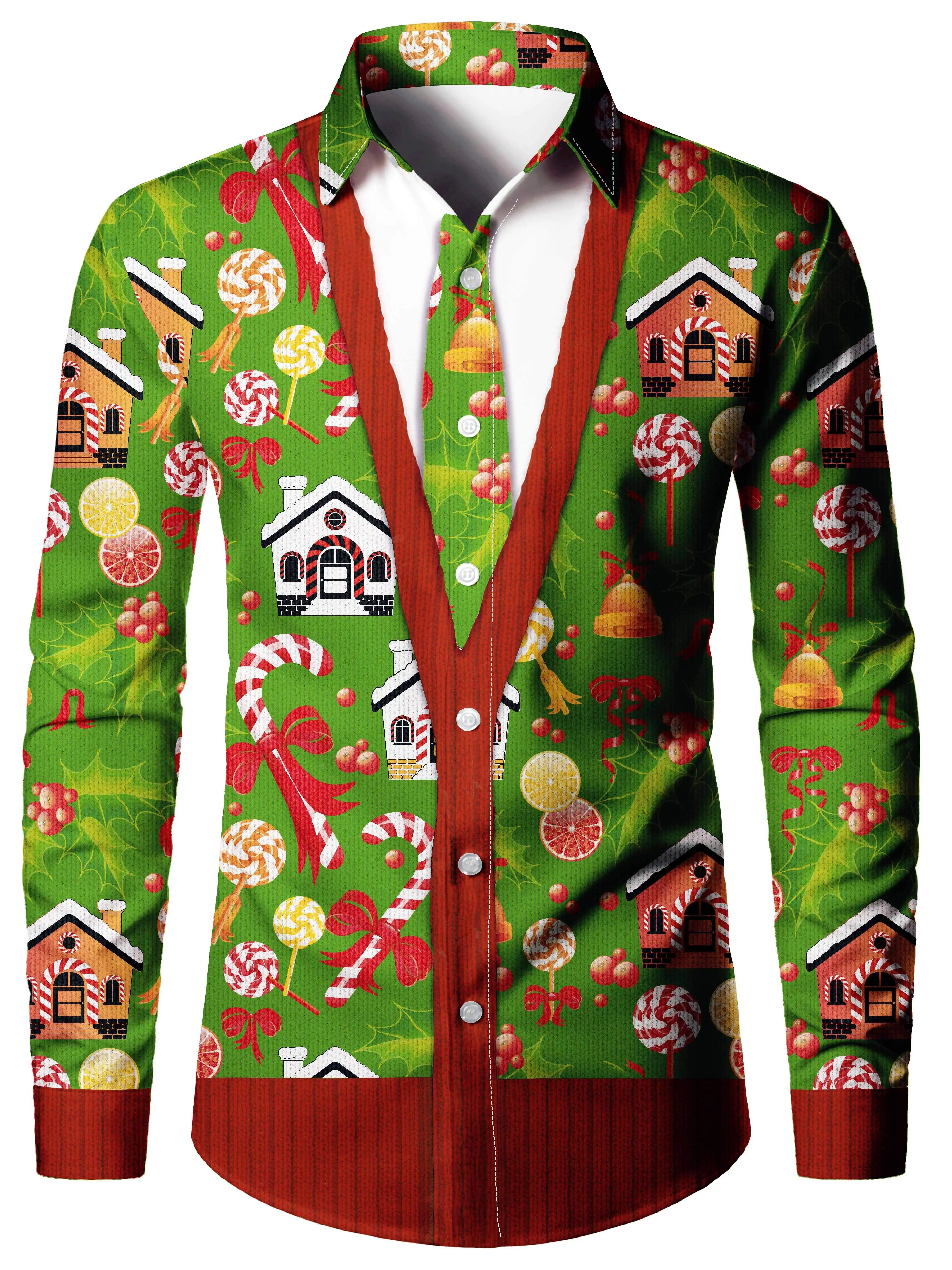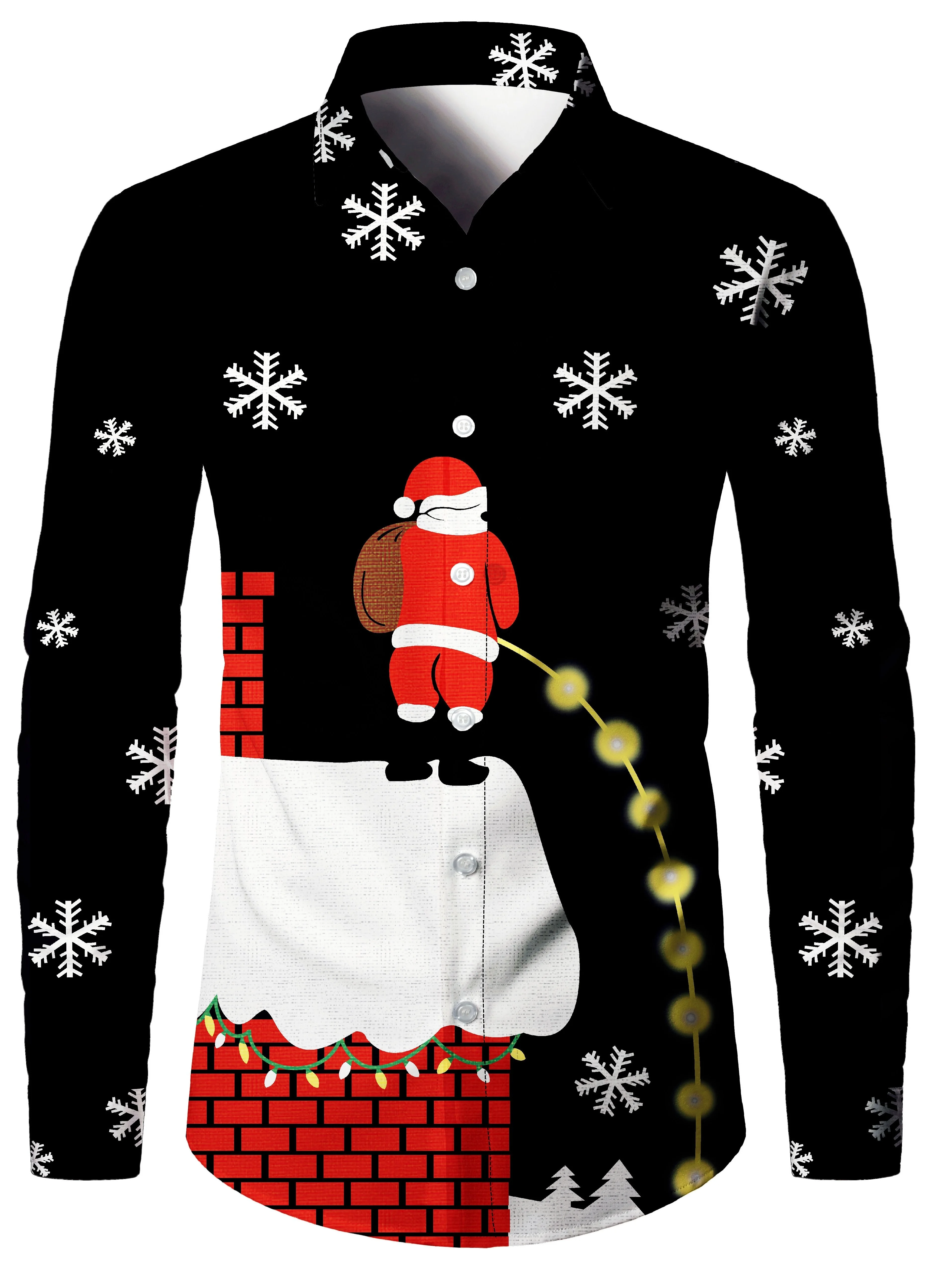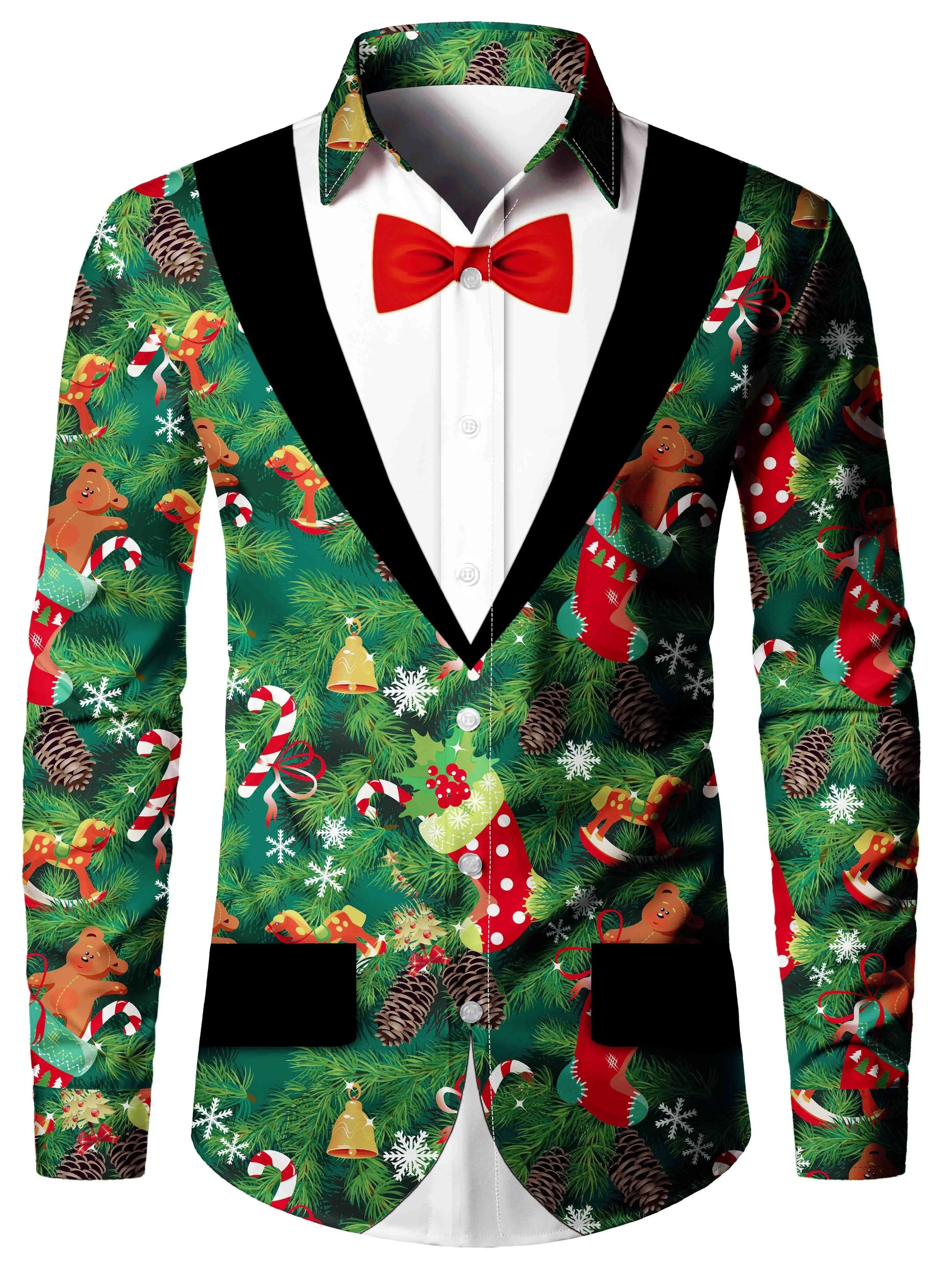 This Christmas theme shirt features a turn-down collar, single-breasted closure, and full-length sleeves that mimic the structure of a traditional formal suit—minus the discomfort. The lightweight design makes it ideal for indoor events or layering under outerwear for chilly winter nights. It’s stylish, quirky, and guaranteed to turn heads.