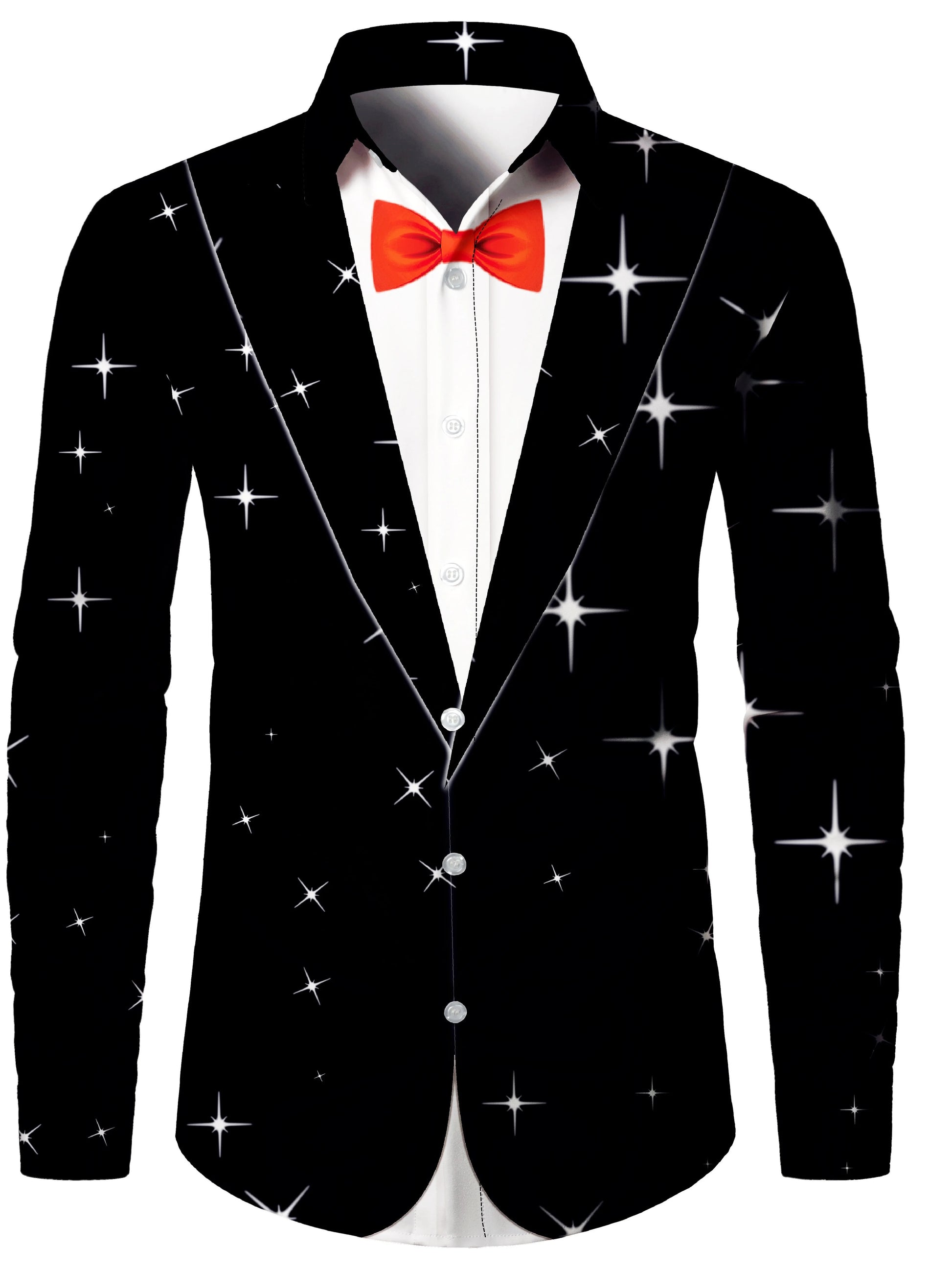 Get ready to upgrade your holiday wardrobe with the stylish, bold, and irresistibly festive Men’s Christmas Tailcoat Print Shirt—now available at dicrodelights. Designed for men who love to stand out, this long-sleeve shirt mixes classic Christmas charm with modern comfort and all-day wearability. Whether you're heading to a Christmas party, office gathering, family dinner, or festive night out, this printed fake suit shirt gives you a sharp, tailored look without the bulk of an actual suit.