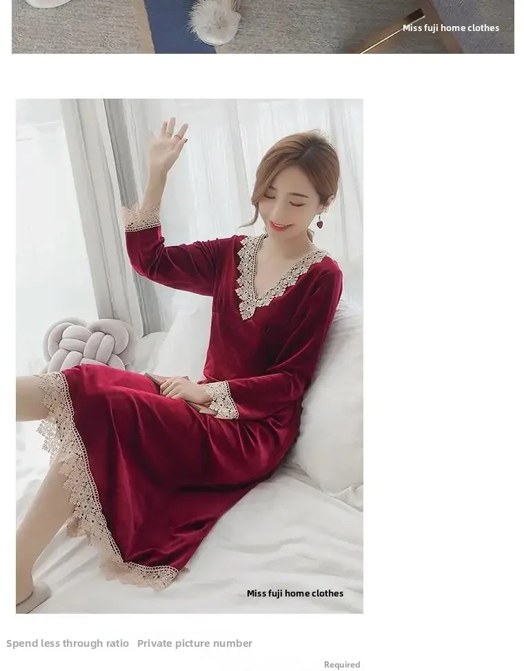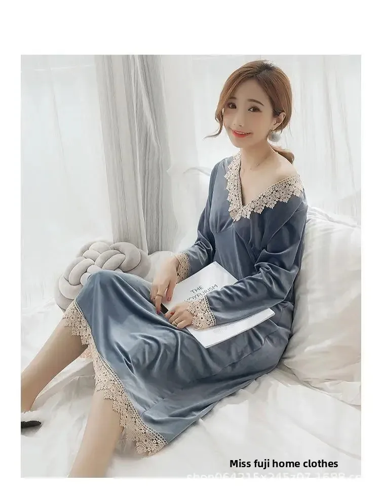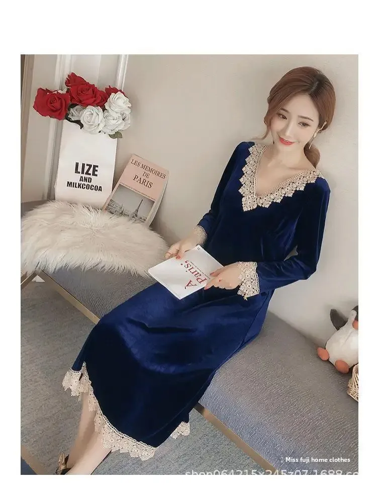 Plus Size 5XL Sleep Dress Women Winter Long Sleeve Sexy Luxury Velvet Spring Autumn Winter Style Korean Version Velvet Nightgown