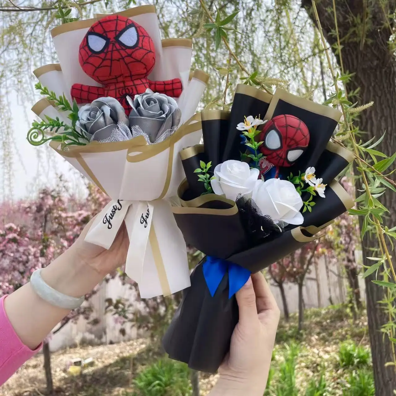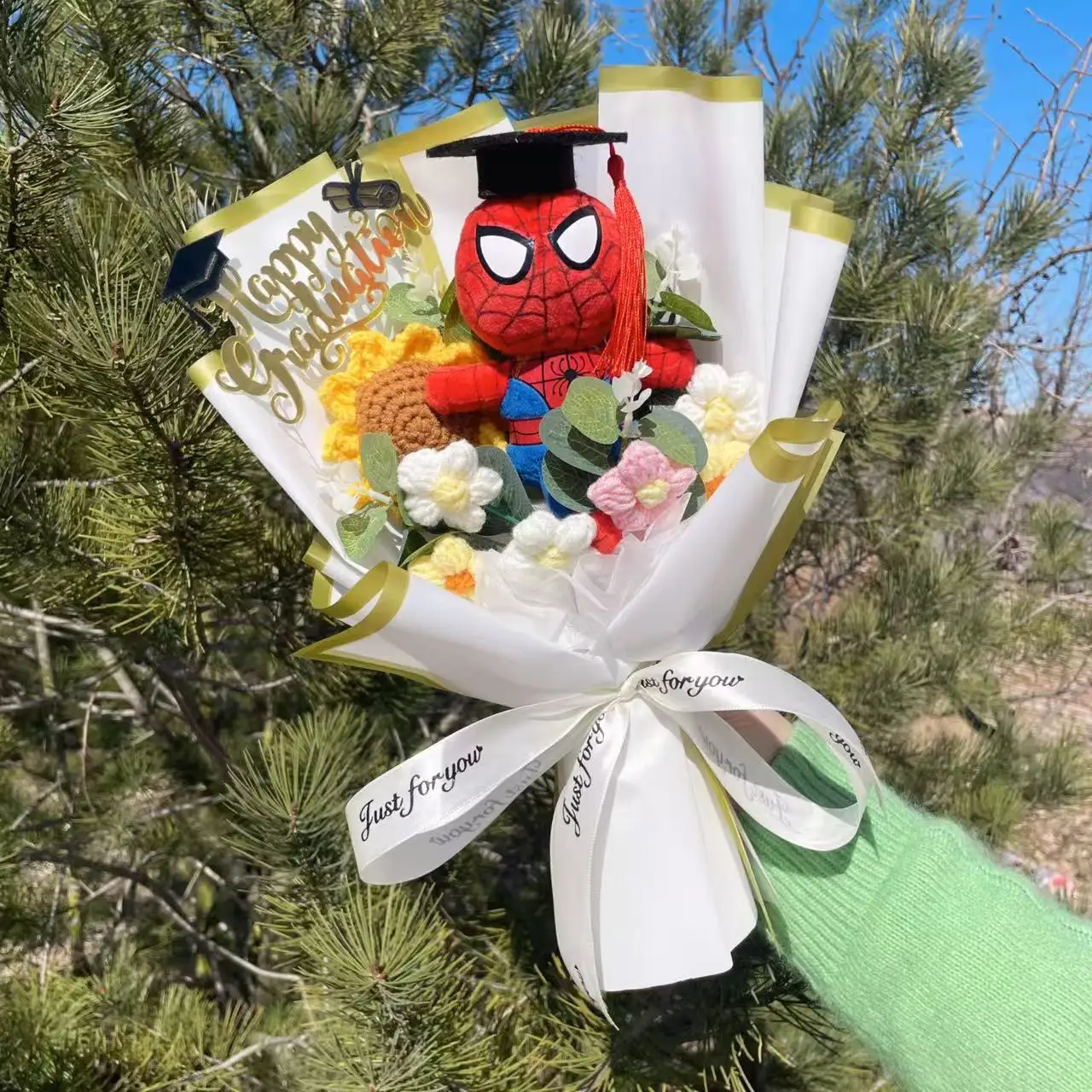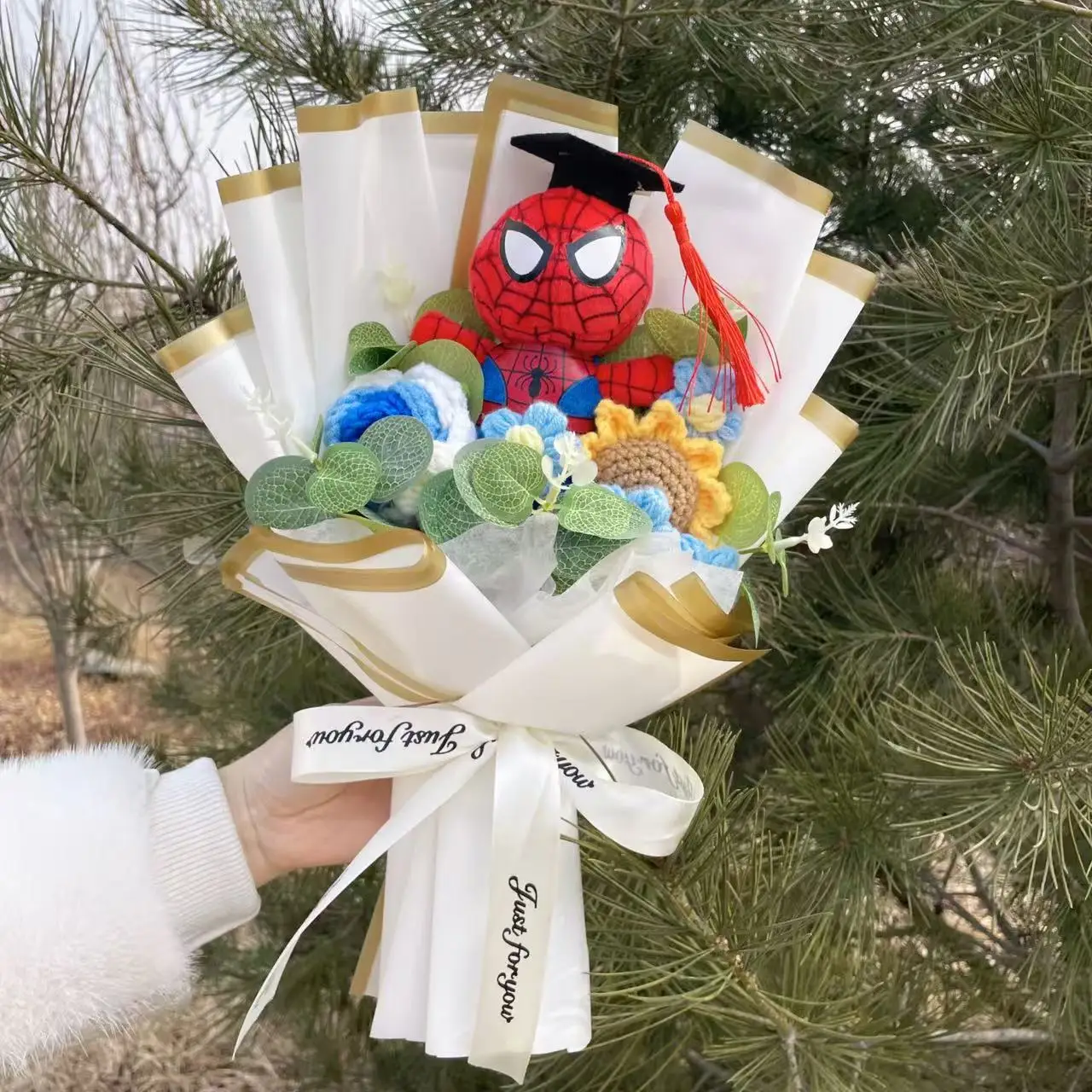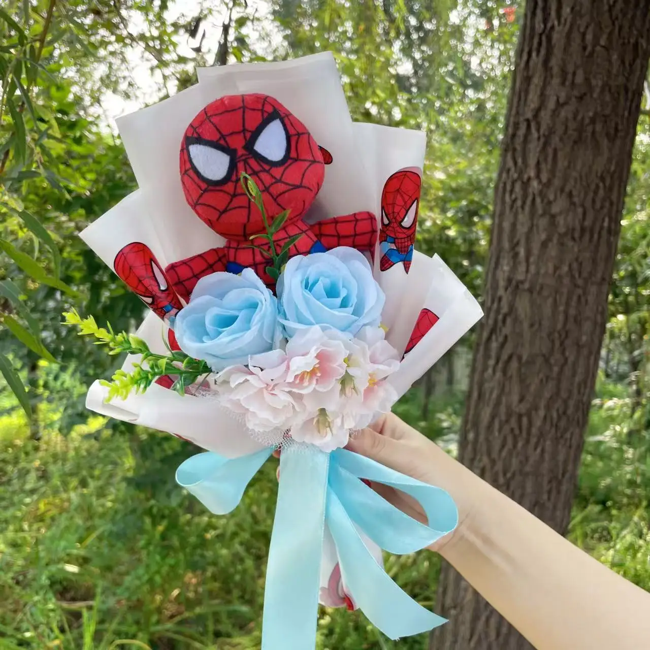 Super Hero Spider-Man Stuffed Plush Dolls Creative Handmade bouquets for Boys Graduation Christmas Birthday Gifts