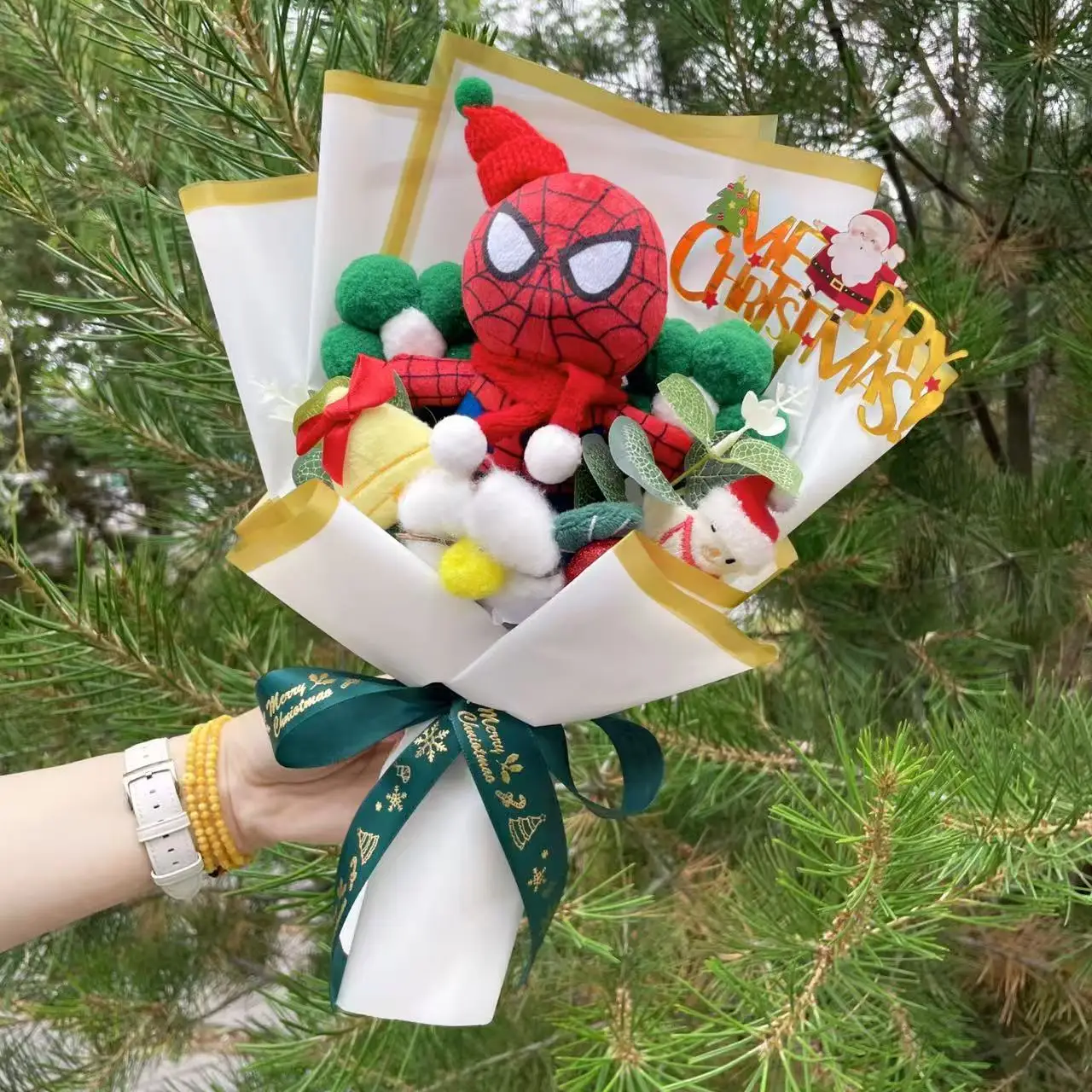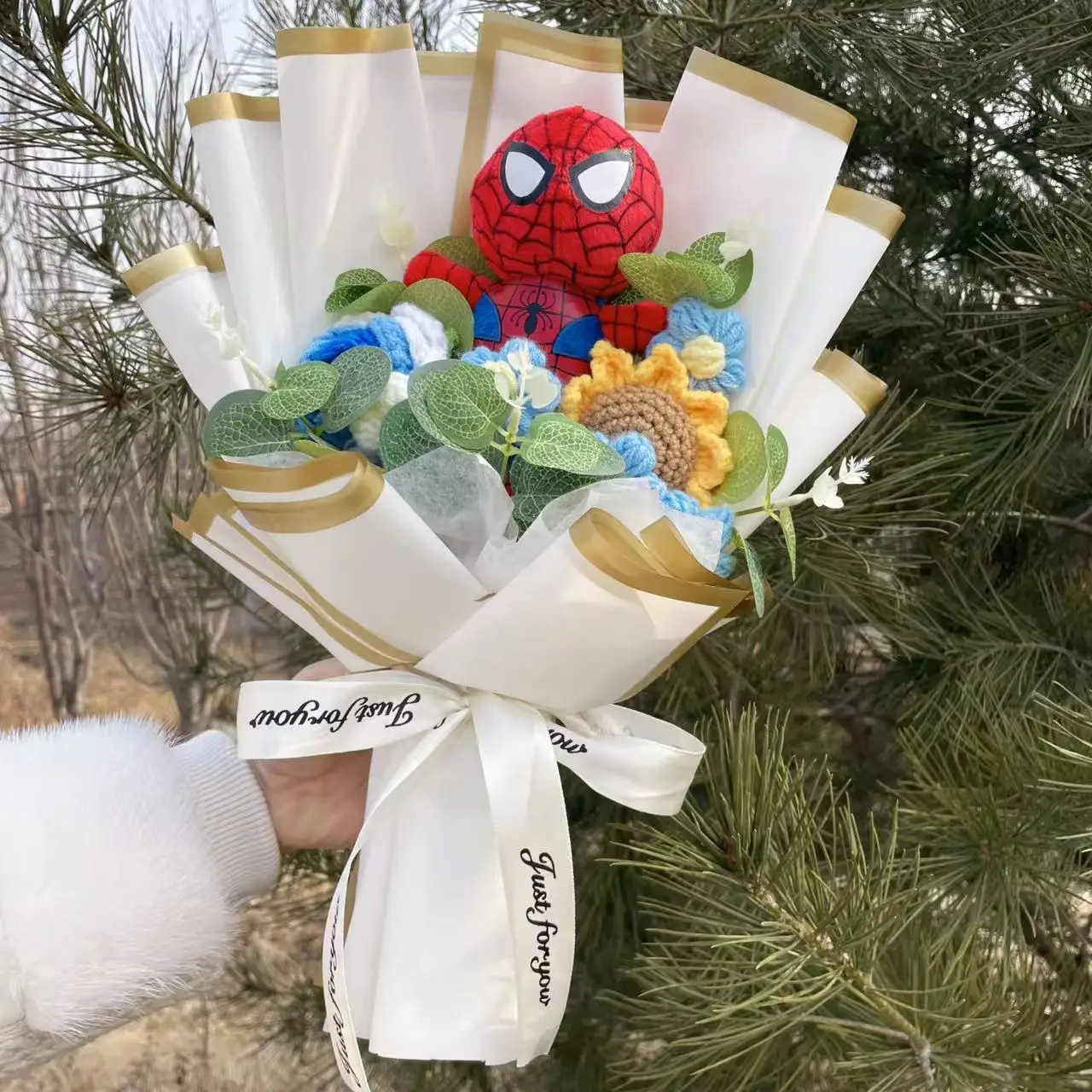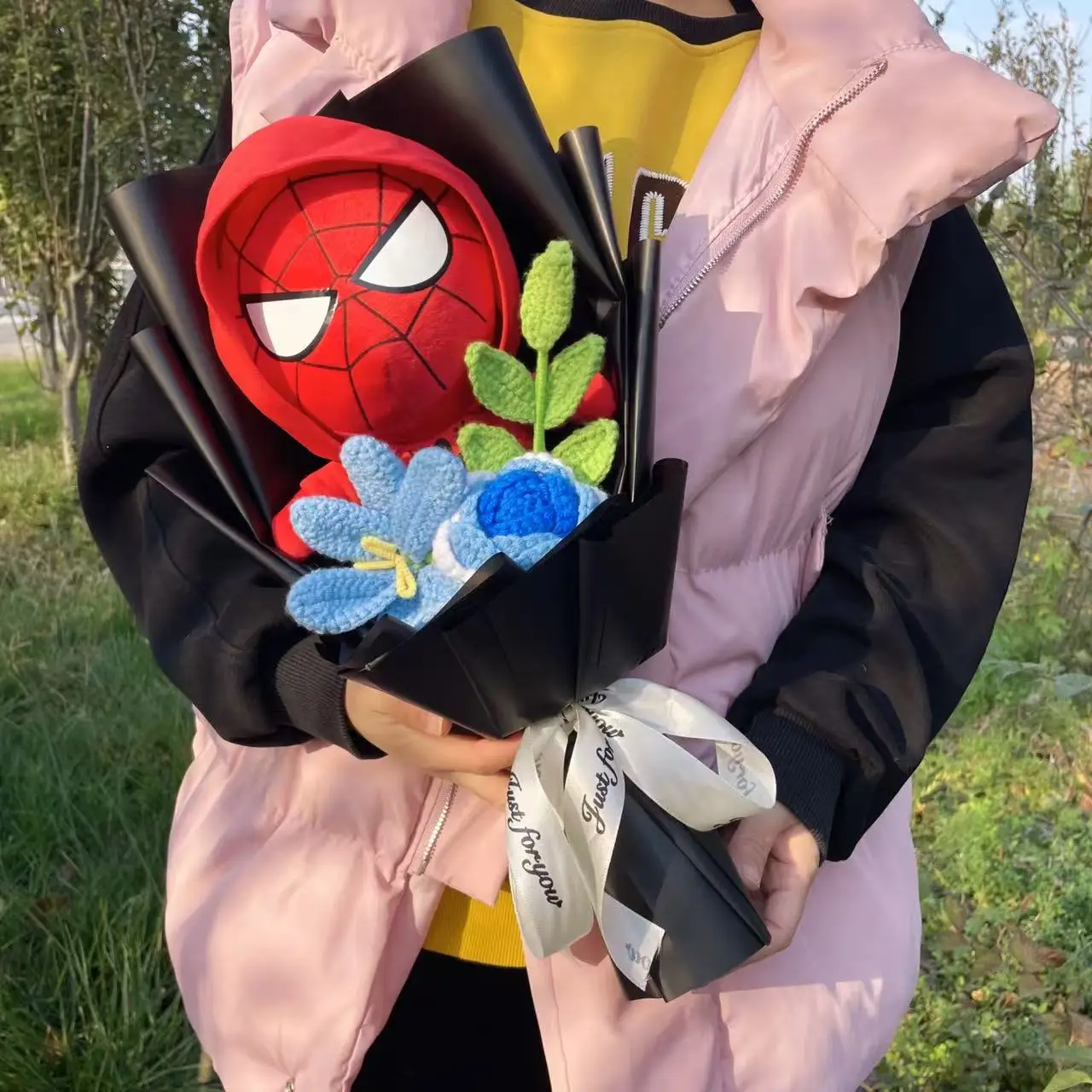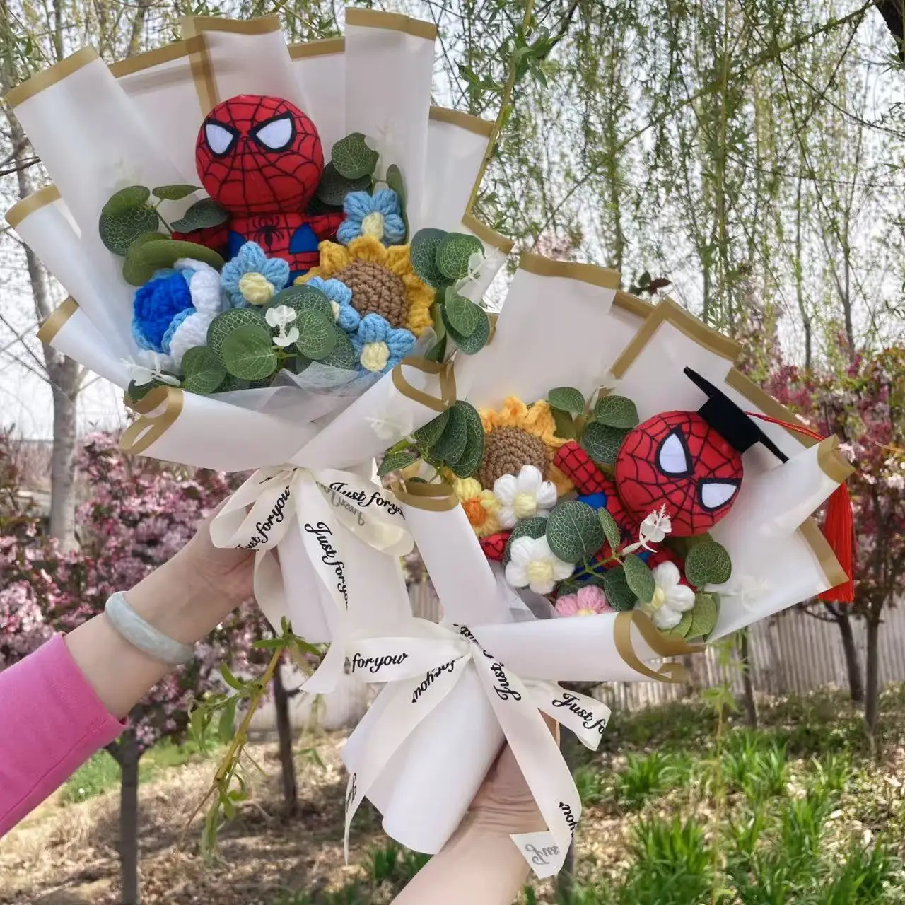 Super Hero Spider-Man Stuffed Plush Dolls Creative Handmade bouquets for Boys Graduation Christmas Birthday Gifts