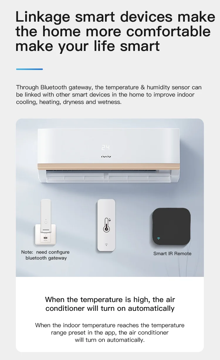 You can set changes in temperature or humidity to allow other devices to perform specific actions.