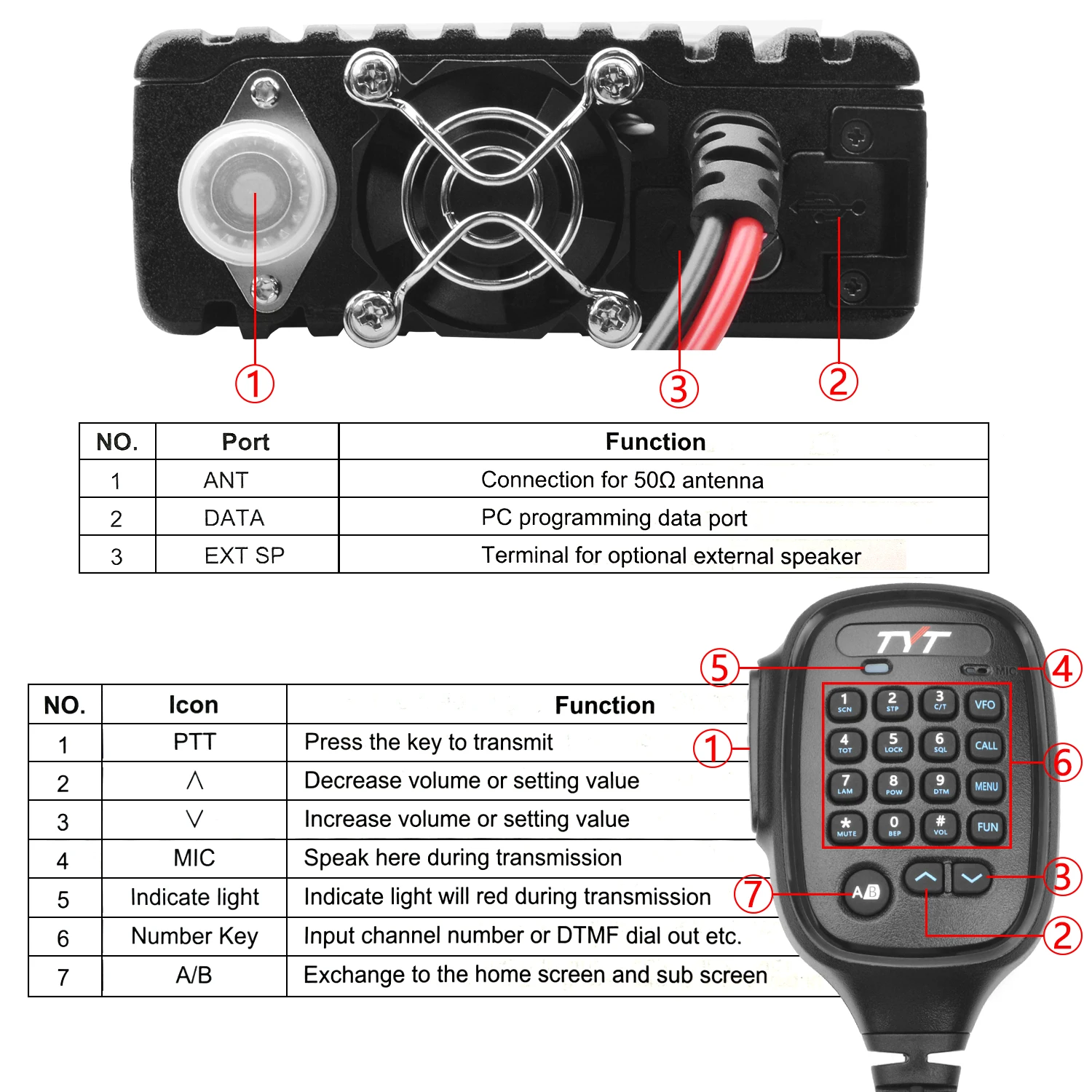 TYT Walkie Talkie TH-8600 IP67 Waterproof Car Transceiver 2m 70cm Dual Band Amateur Mini Mobile Radio 25Watt 200 Memory Channels